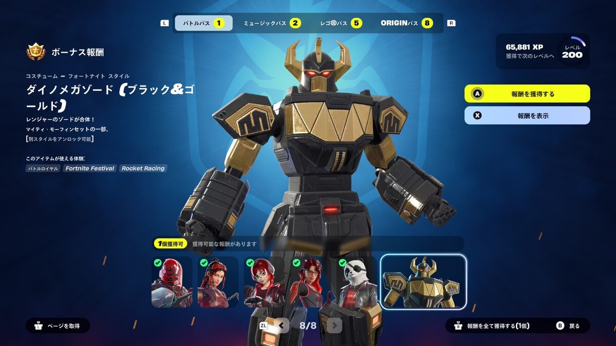 前回の投稿で触れていたバトルパスのレベル上げ終了。