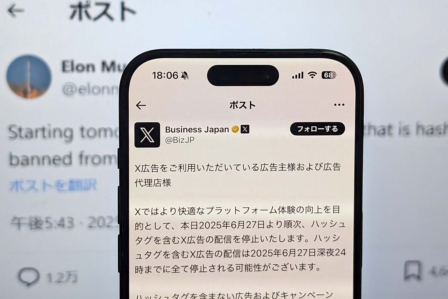 Xは、6月27日24時から「X広告」でハッシュタグを中止する。27日に突如発表した。